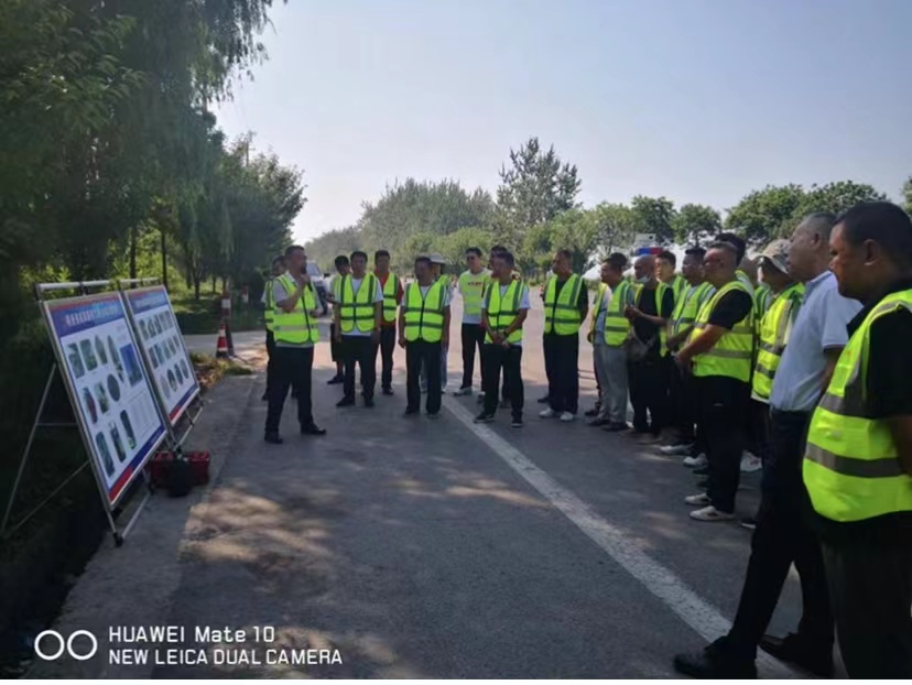 最后,李智勇總工程師介紹了咸陽(yáng)市地方道路今年的預(yù)防性養(yǎng)護(hù)中積極推廣精細(xì)化碎石表處技術(shù),借助8月10日市農(nóng)村公路事業(yè)服務(wù)中心組織全市縣區(qū)交通運(yùn)輸局及農(nóng)村公路管理單位在我公司淳化縣G211潤(rùn)鎮(zhèn)段精細(xì)化碎石表處施工現(xiàn)場(chǎng)召開(kāi)現(xiàn)場(chǎng)交流會(huì)的契機(jī),希望各分公司、拌合站立即行動(dòng)起來(lái),利用當(dāng)前的大好時(shí)機(jī),檢查和調(diào)整改性乳化瀝青生產(chǎn)設(shè)備,做好各項(xiàng)準(zhǔn)備工作,組織試生產(chǎn),發(fā)揮公司技術(shù)設(shè)備優(yōu)勢(shì),主動(dòng)聯(lián)系各縣區(qū)地方道路管理部門(mén),搶抓機(jī)遇,開(kāi)拓市場(chǎng),占領(lǐng)市場(chǎng),為咸陽(yáng)市農(nóng)村公路發(fā)展貢獻(xiàn)公司力量。